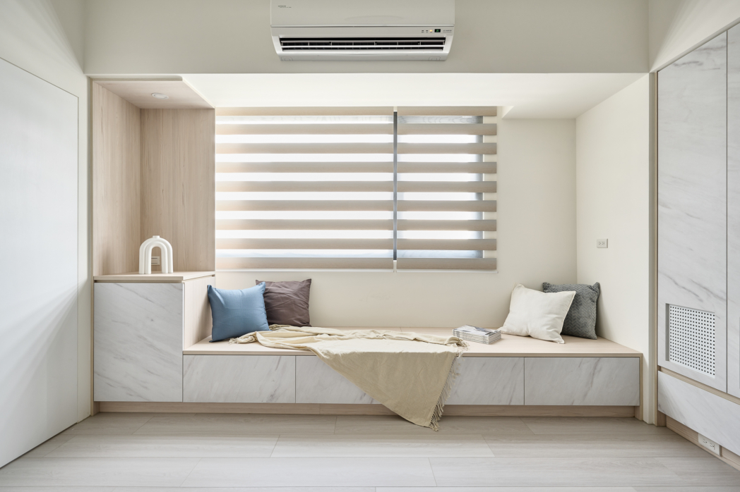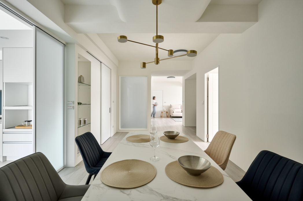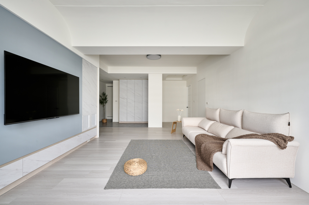 空間中的圓角設計地置身在家中的頂層,猶如溫柔的懷抱,讓家凝聚其中。