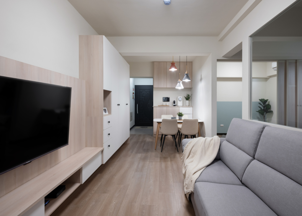 Egger系統板、Blum五金、川湖滑軌、SPC超耐磨木地板。