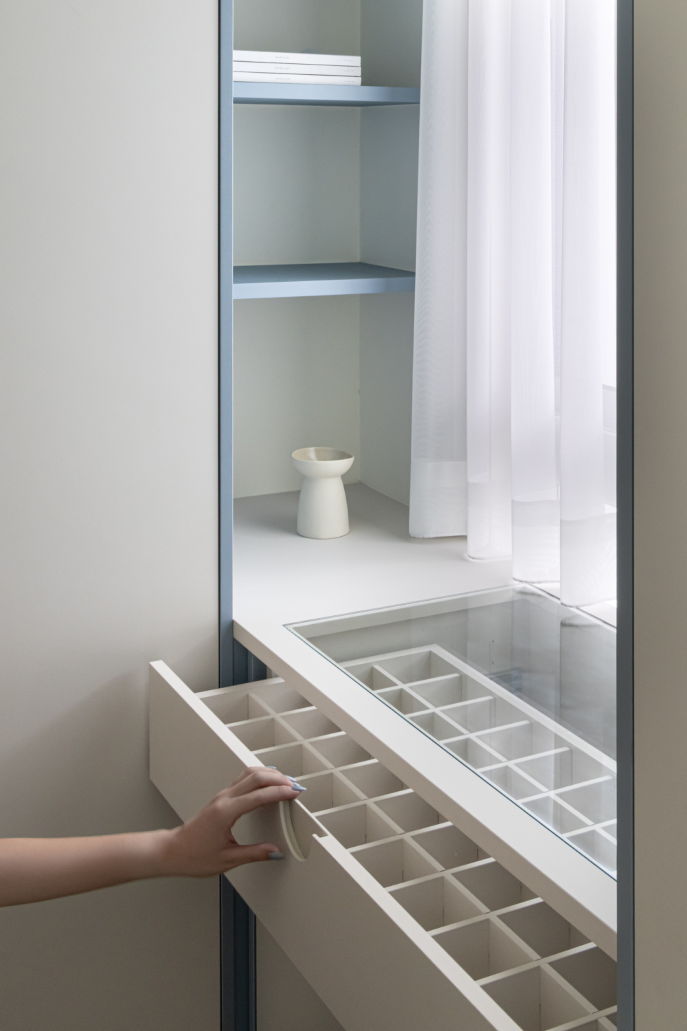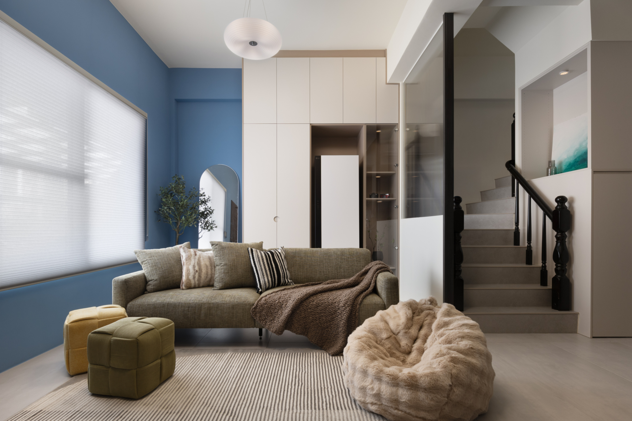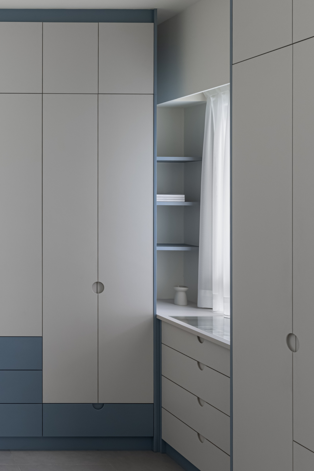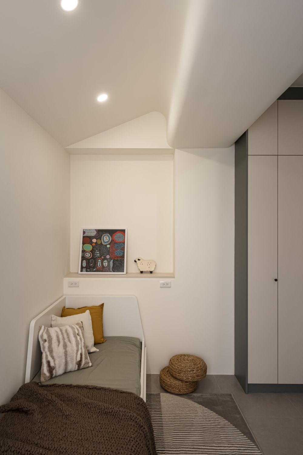 溫柔的色彩緩緩入夢,光線透過白色窗紗柔化,將臥室化為純淨而自在的棲所。