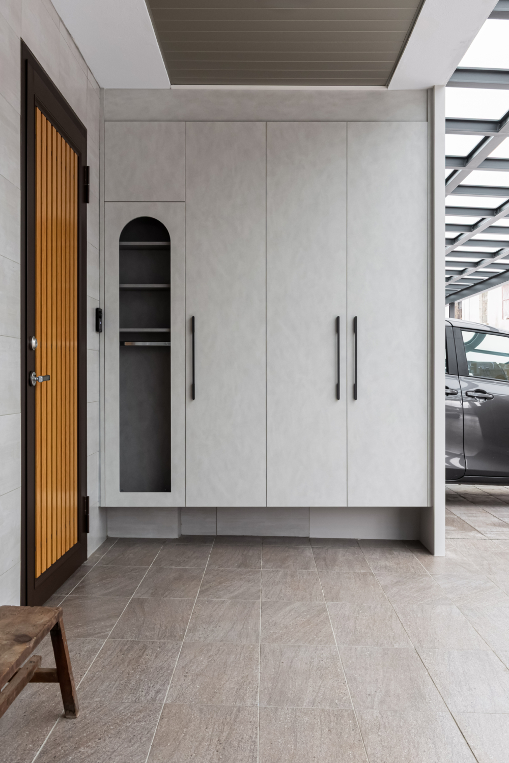 拱型框景與圓弧線條增添柔和感