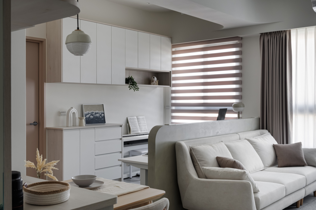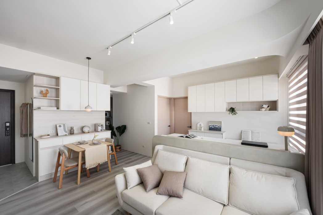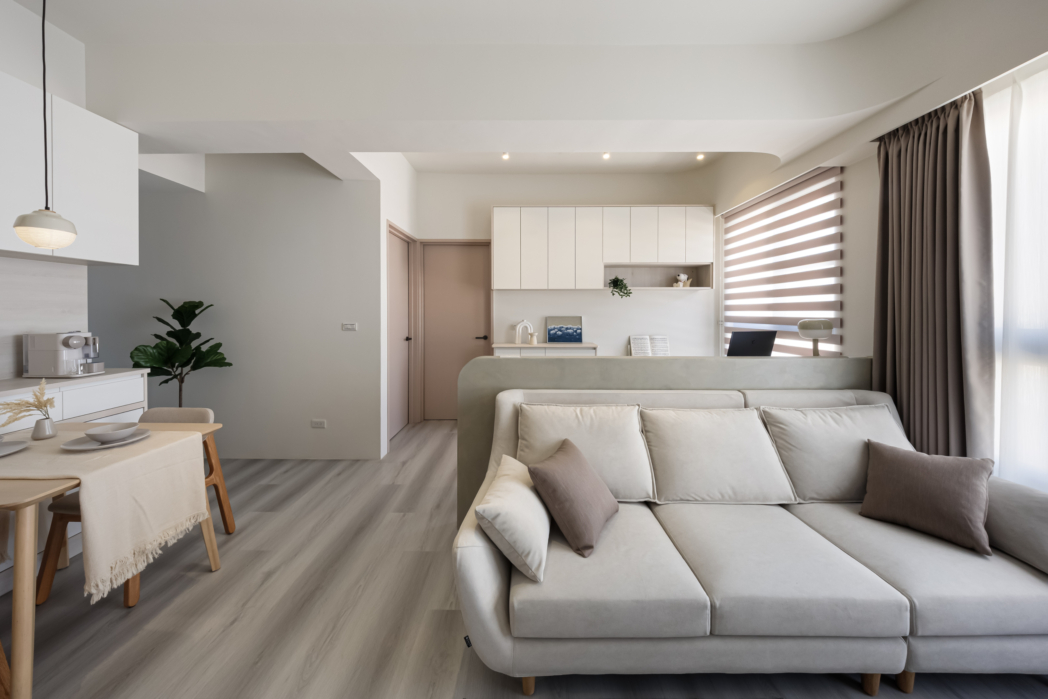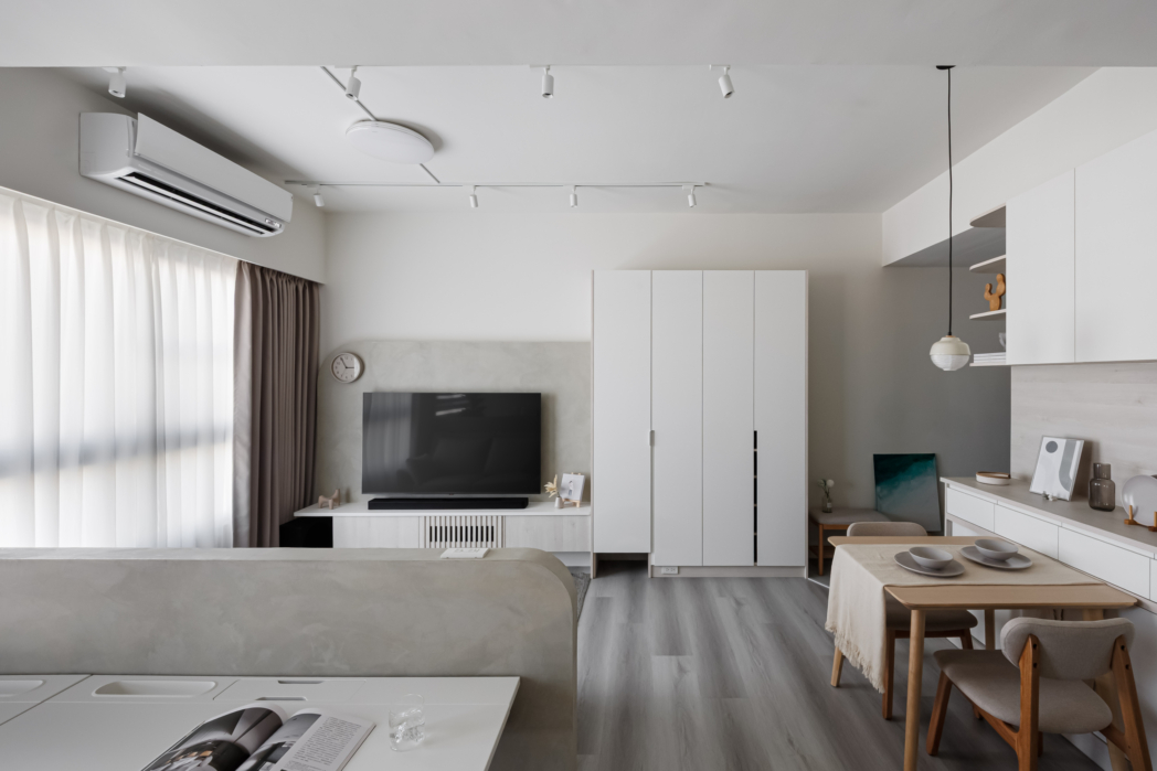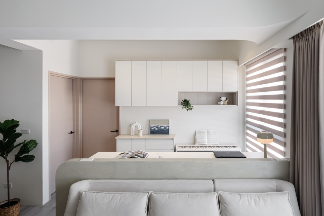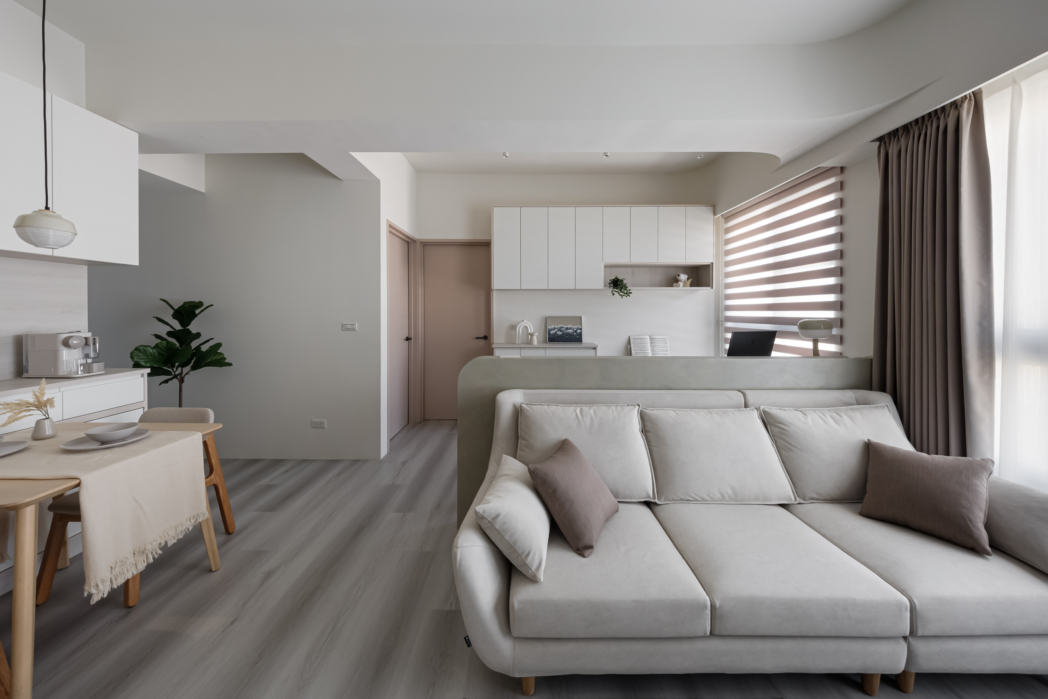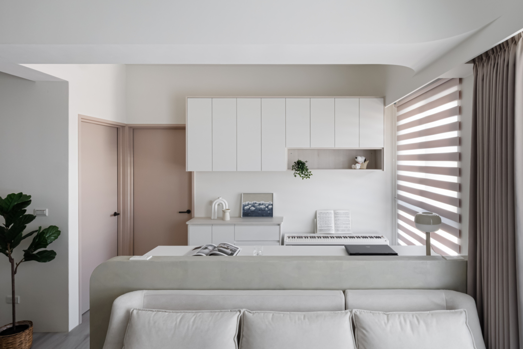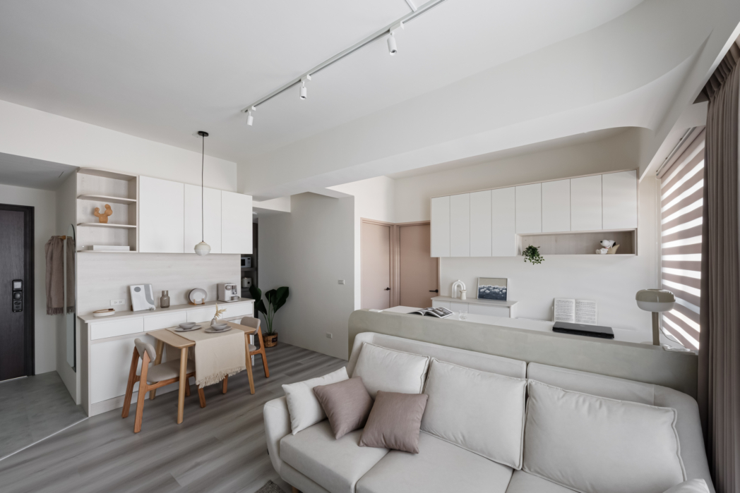 溫潤白與霧灰構築寧靜的日常基調,柔和圓角揉進空間細節, 輕描慢寫地編織出一室靜謐。