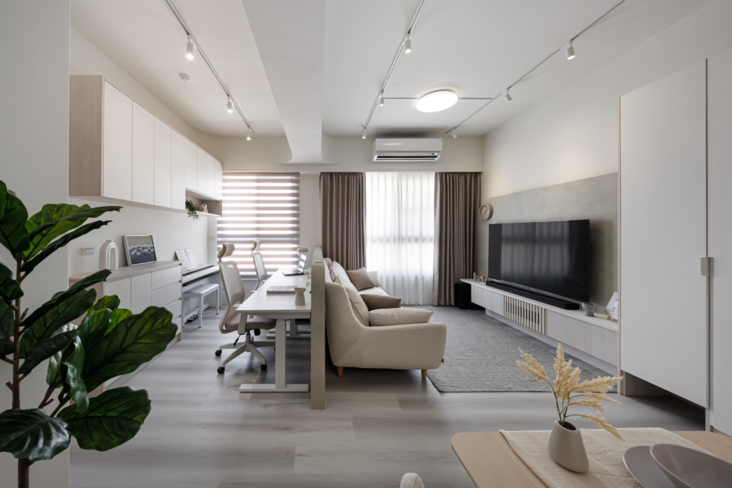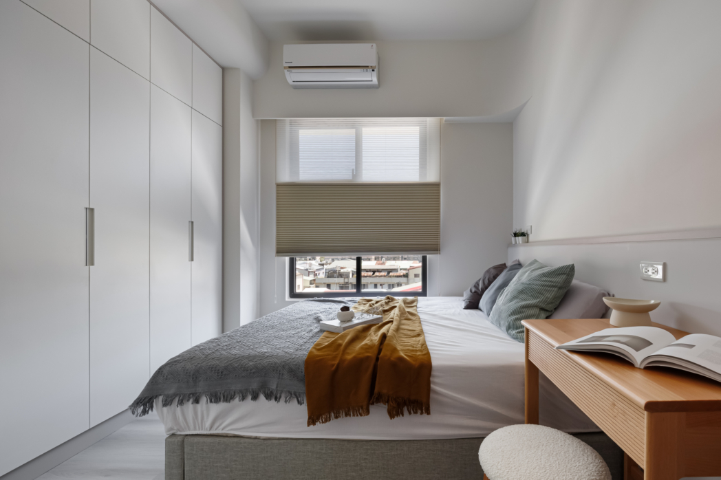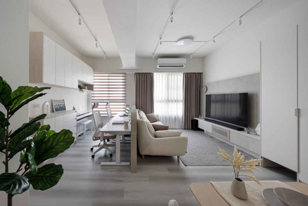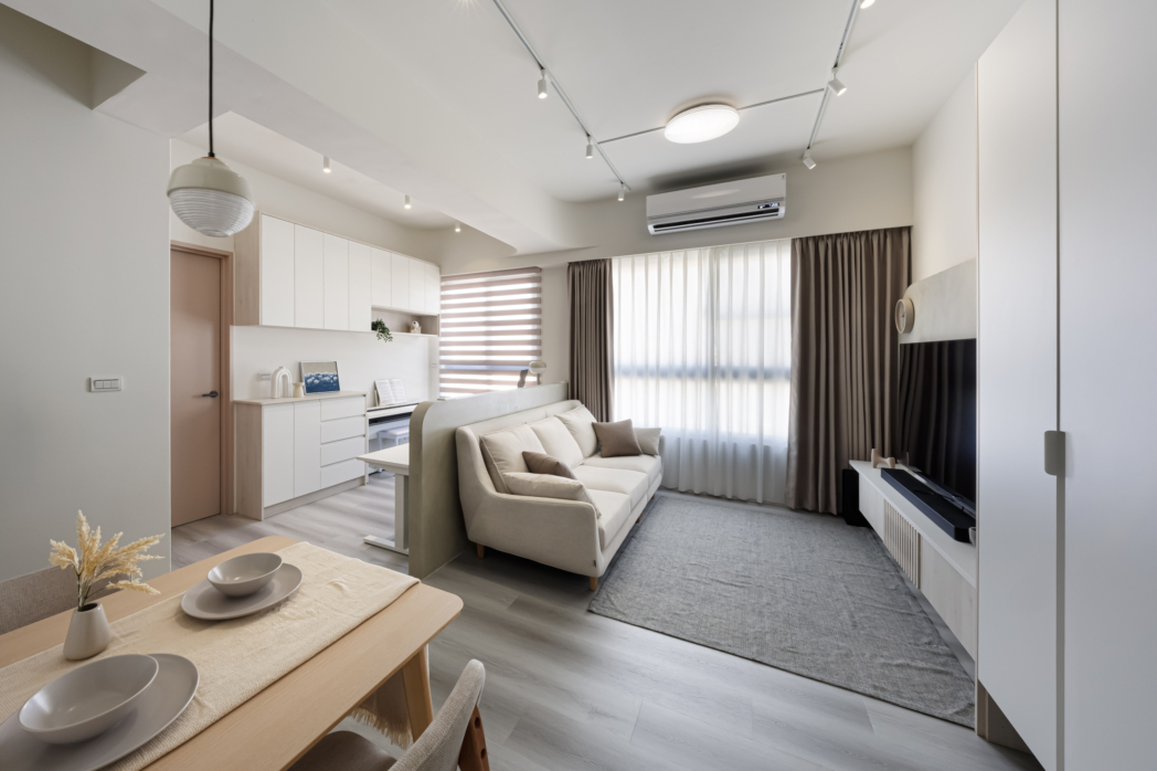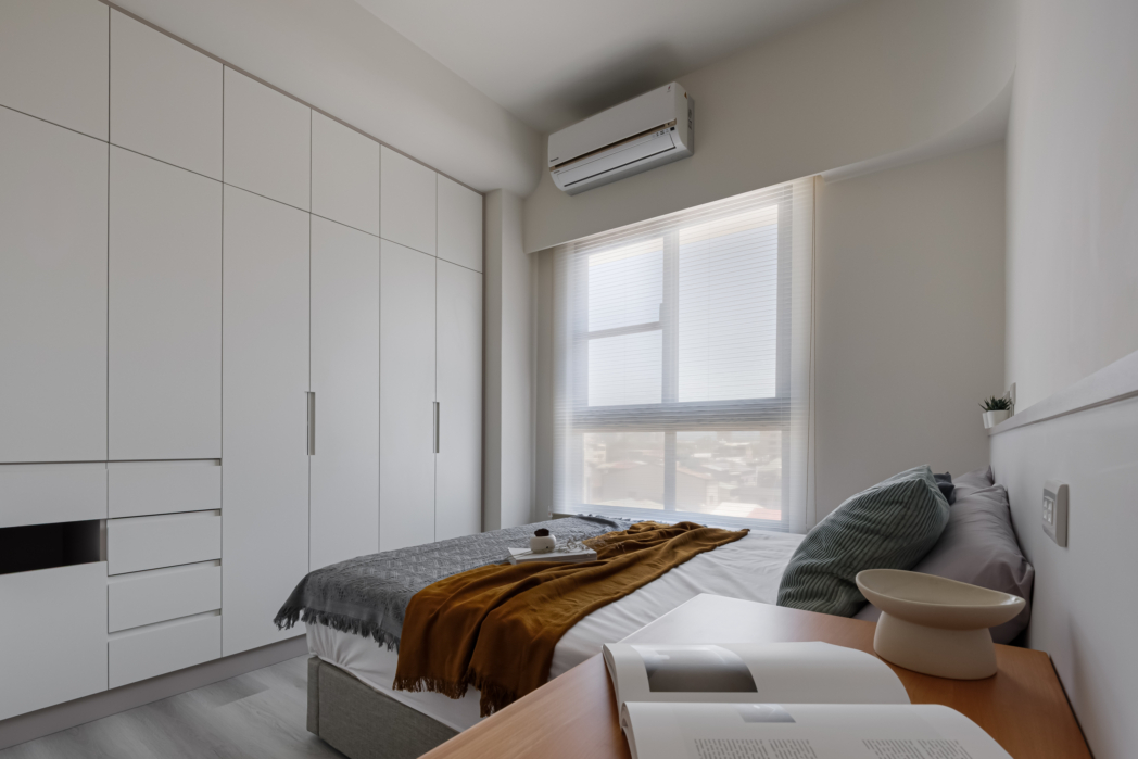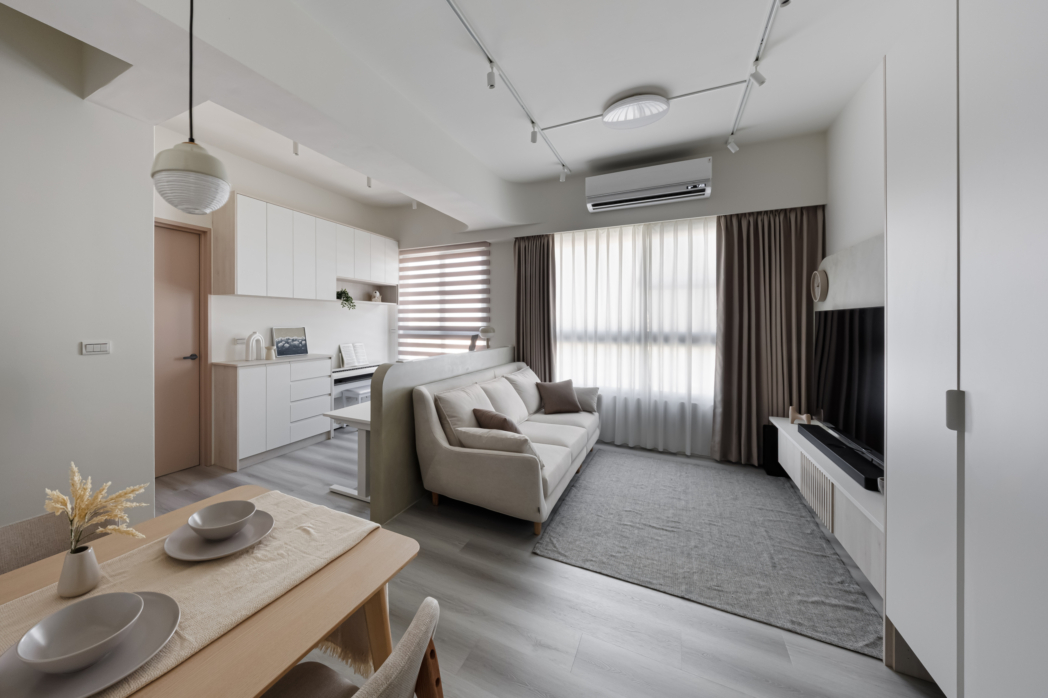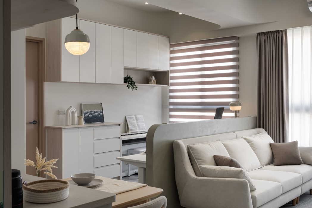 溫潤白與霧灰構築寧靜的日常基調,柔和圓角揉進空間細節, 輕描慢寫地編織出一室靜謐。