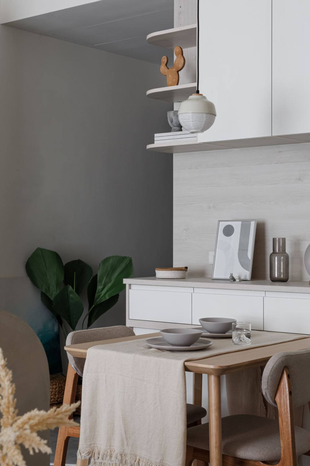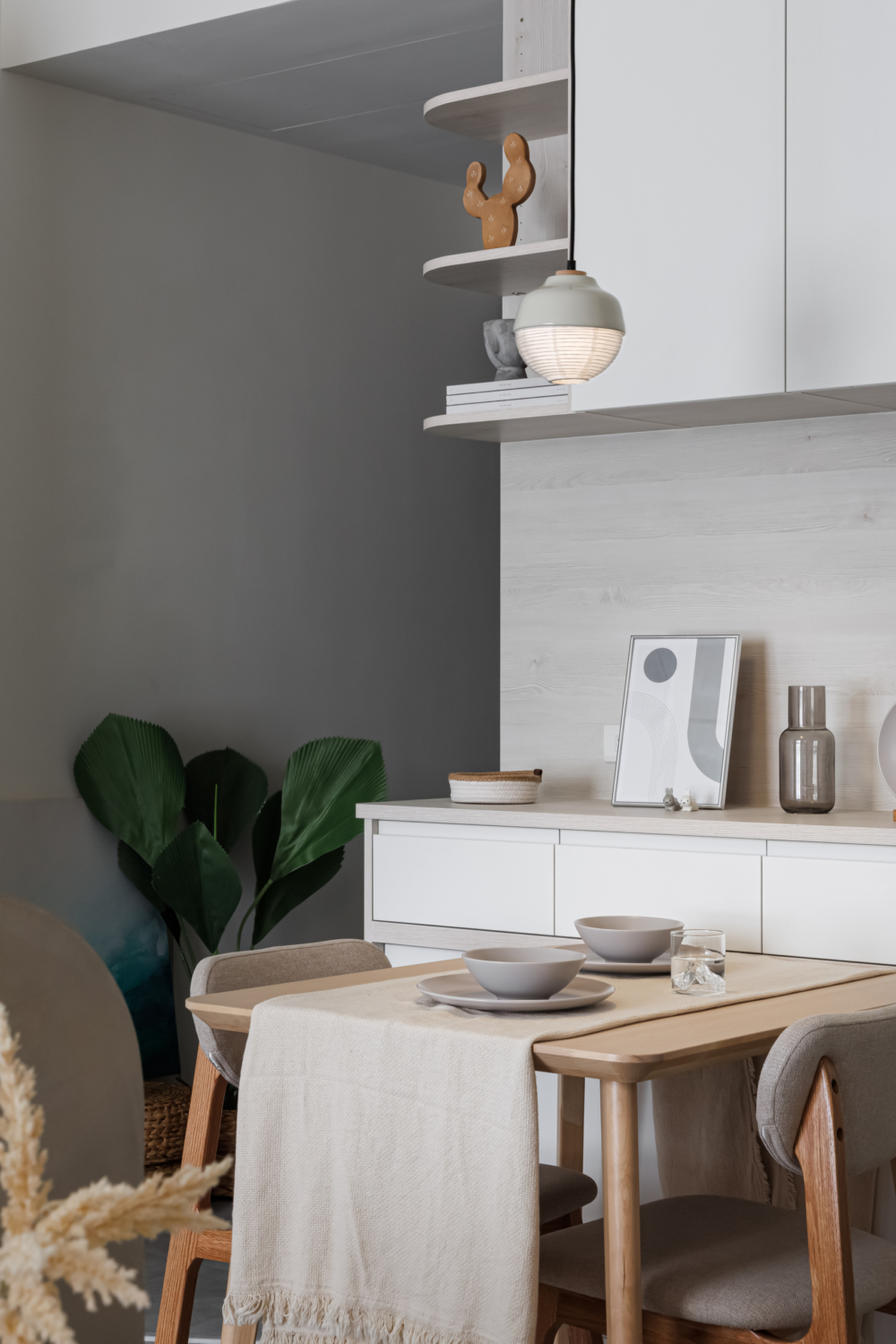 削去過多裝飾, 只有晨光與室內因時間流淌而形塑出的變化,承載著兩人世界最純粹的生活節奏。 在這片不喧嘩的留白裡,日子被溫柔地安放,回歸簡單、回歸心。