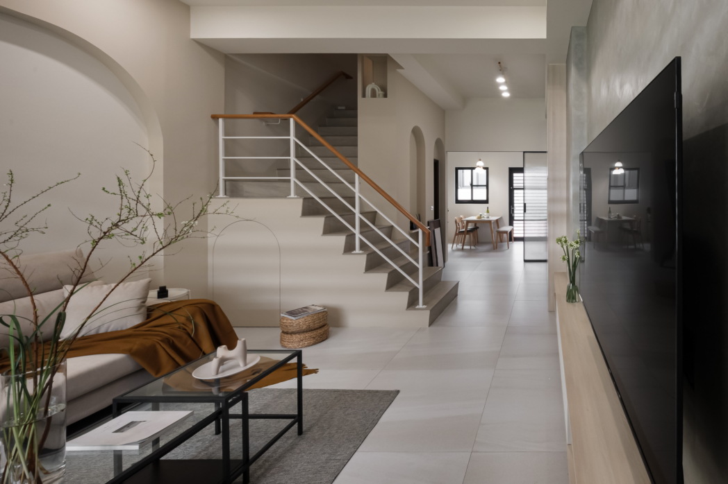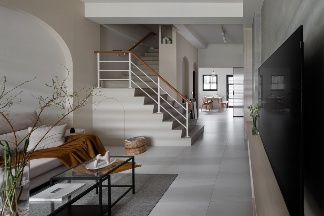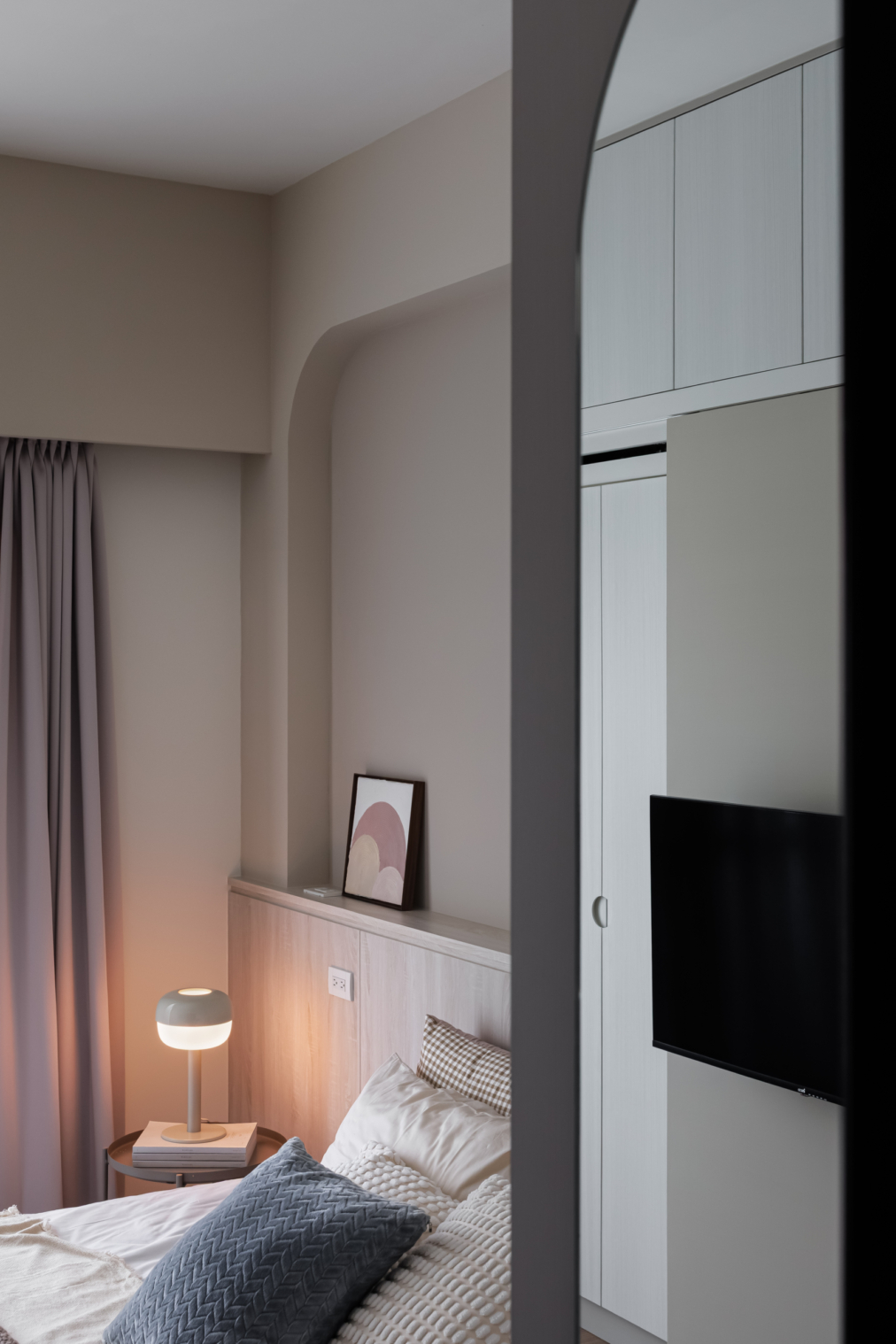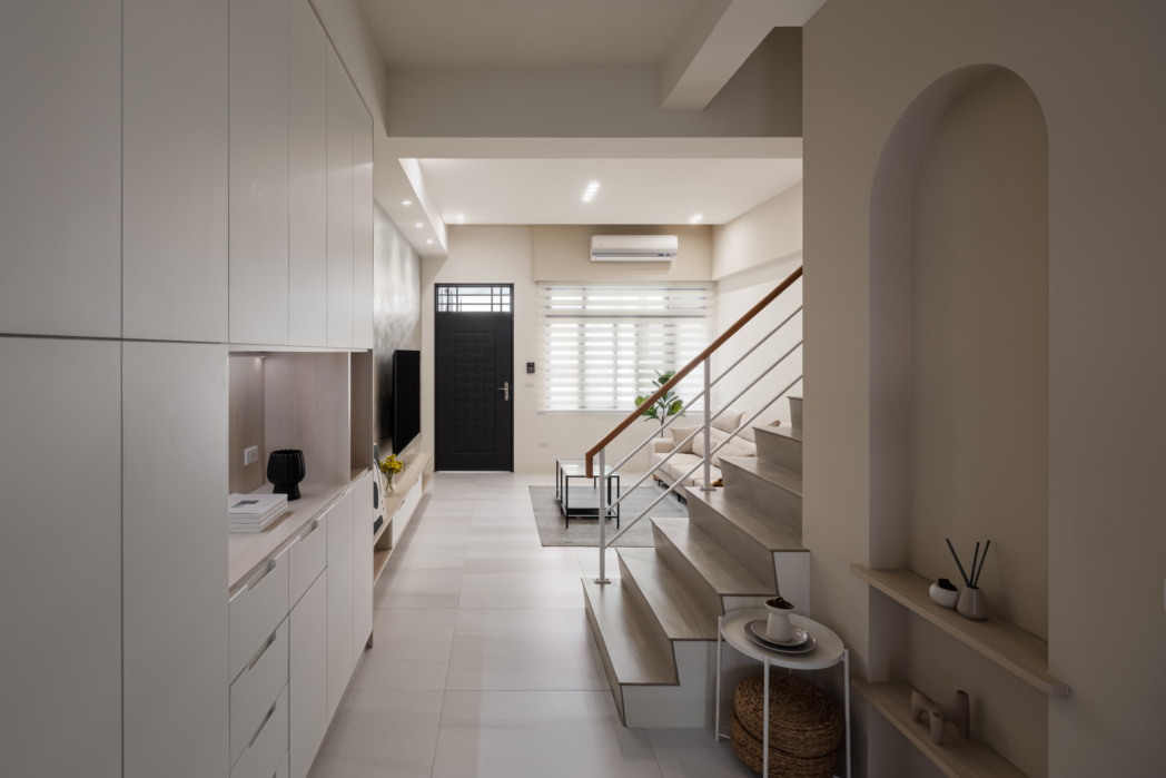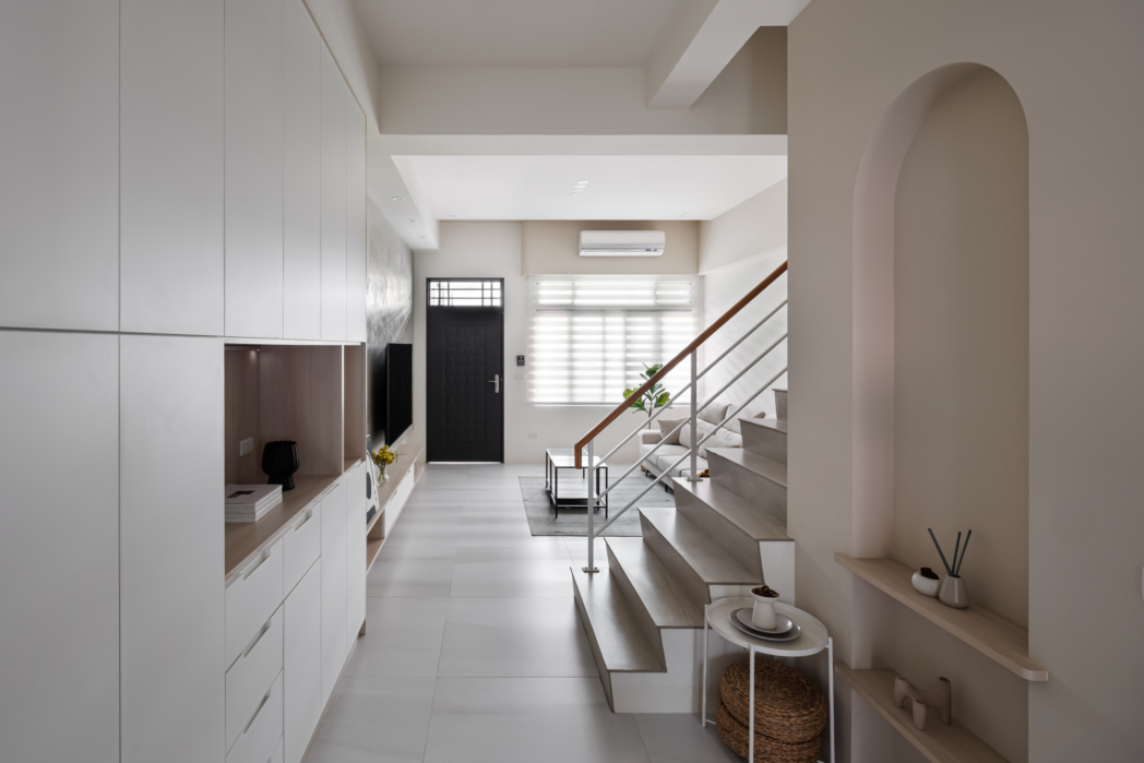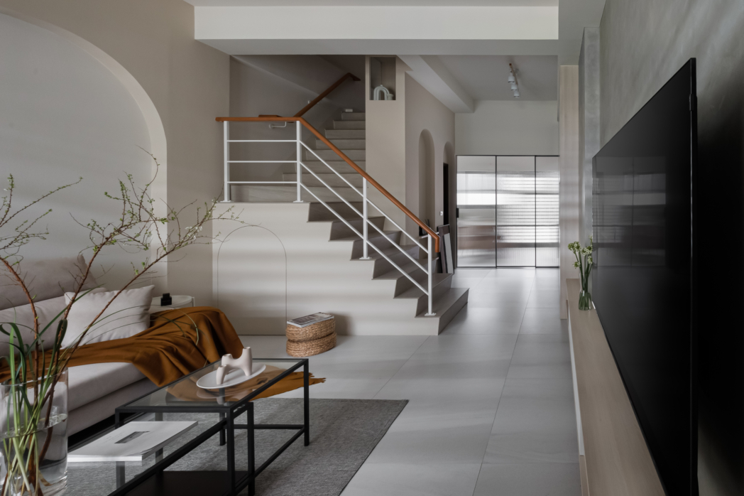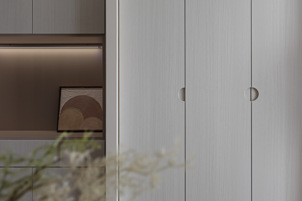 弧形牆面柔化了空間的線條,像是一種擁抱,溫柔地迎接每一個歸來的瞬間;木質地板傳遞著自然的溫度,隨著每一步行走,彷彿聽見生活的呢喃。
