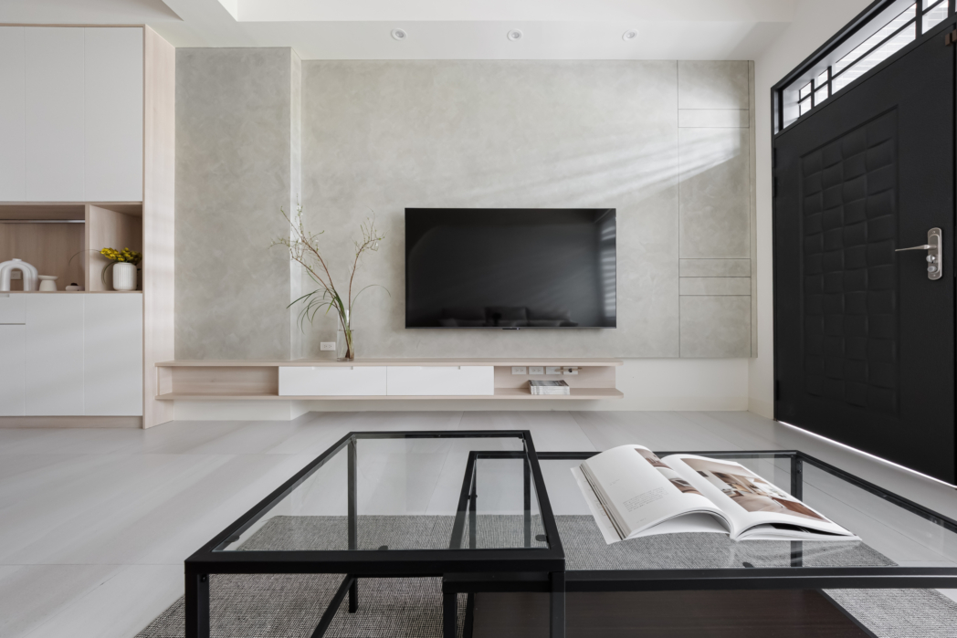 | 設計坪數 | 室內13.2坪 | 建材說明 | Egger系統板、Blum五金、川湖滑軌、DULUX調色漆、司曼特藝術塗料、移動電視牆五金、鋁框烤漆推拉門 |