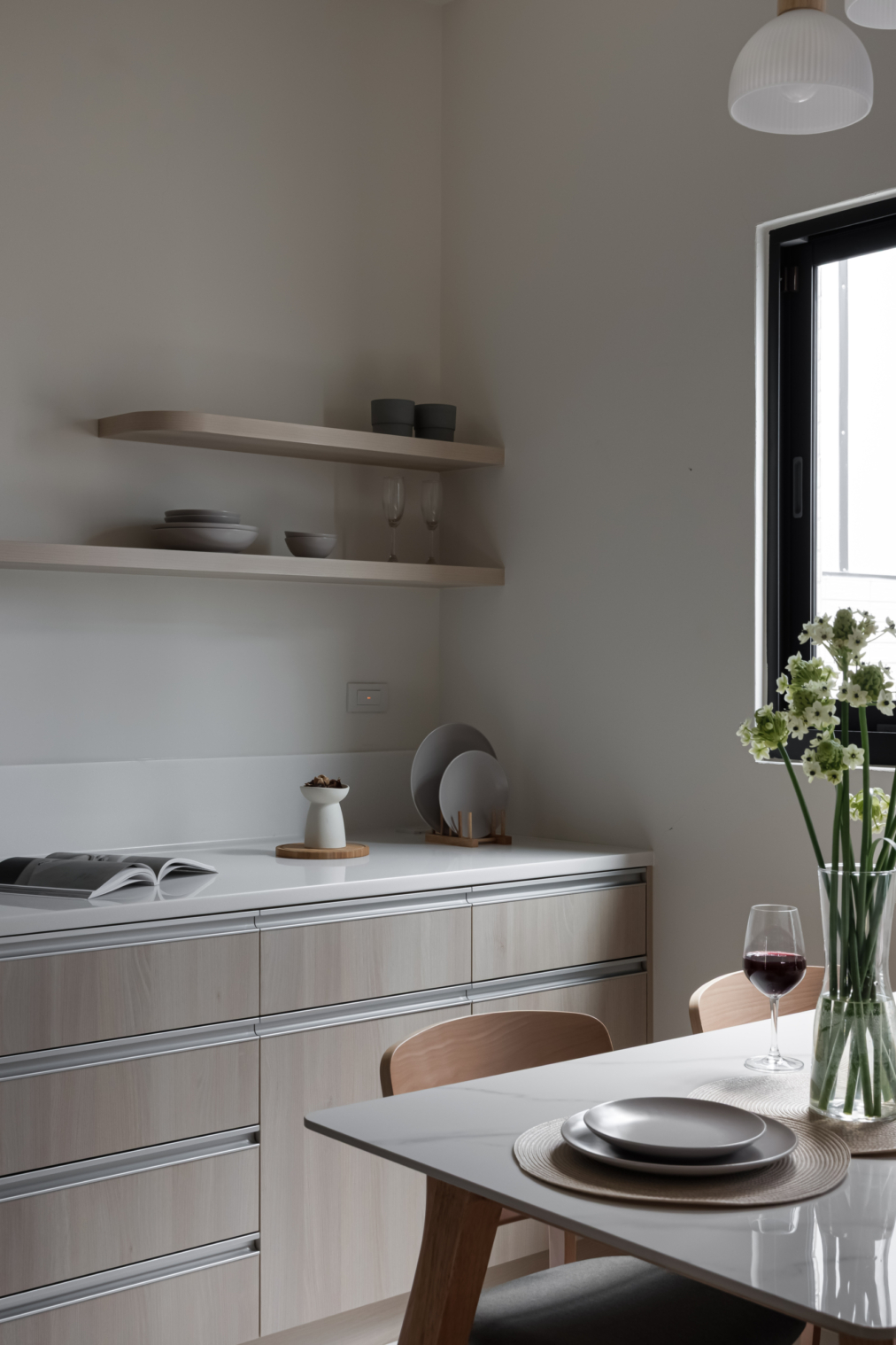 光影透過玻璃窗灑落,映照在細膩的紋理上,彷彿時間在此緩緩流淌。每一件家具、每一束花草,都是生活的痕跡,記錄著日常中的溫暖與美好。
