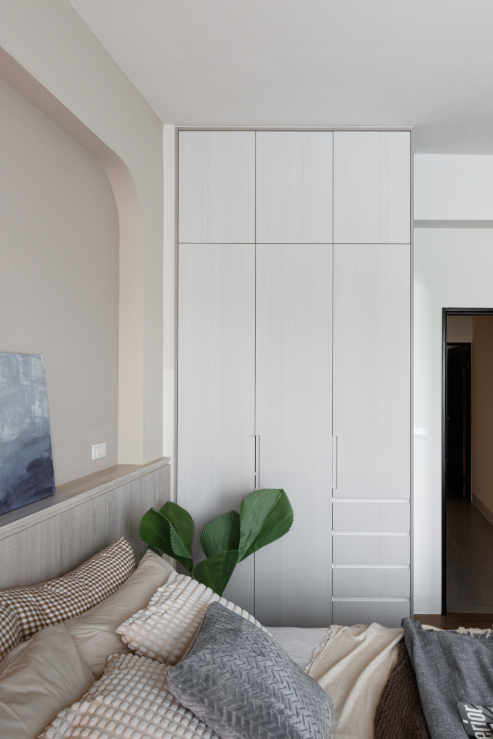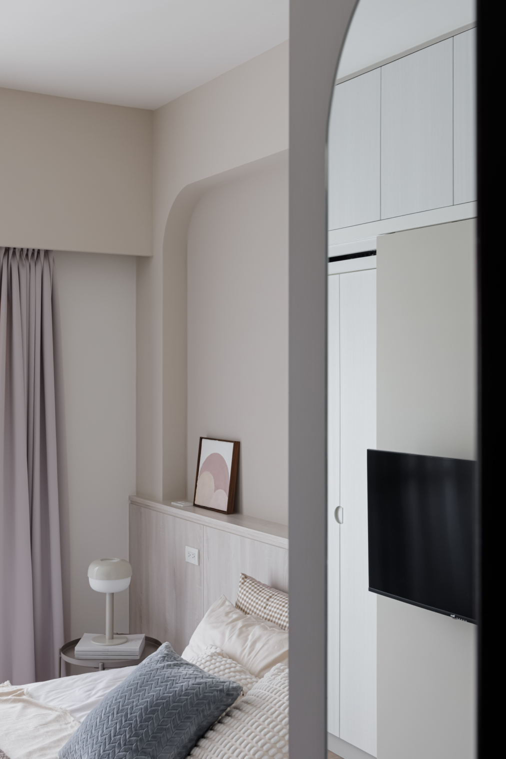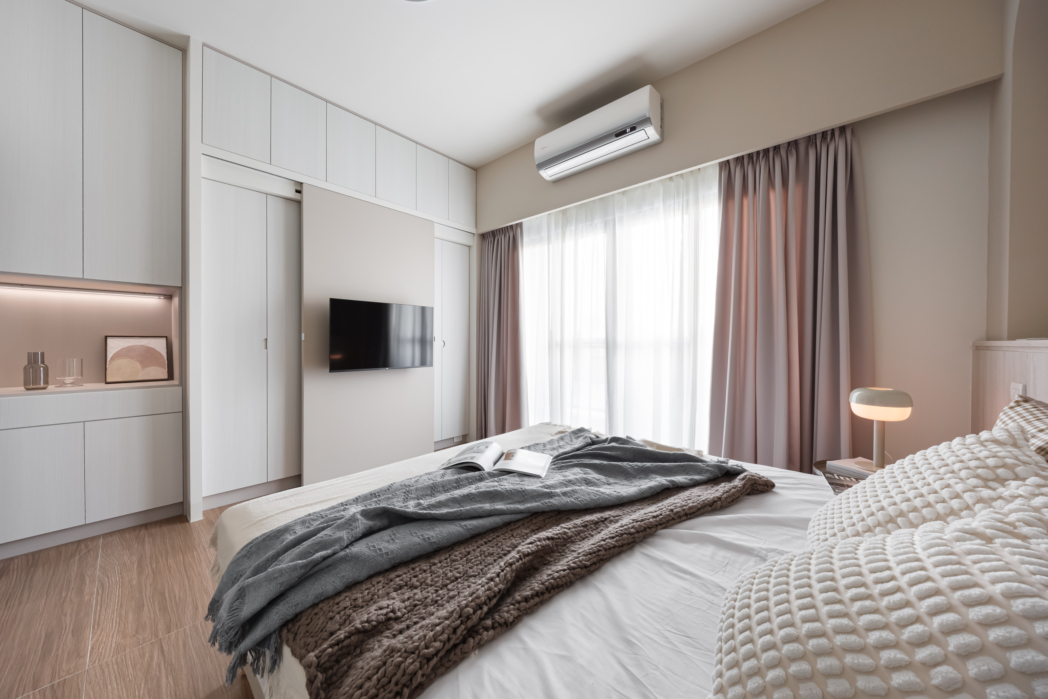 在柔和米白與溫潤木質的色調交織下,這個空間悄然訴說著家的故事。