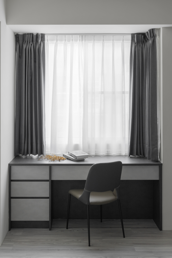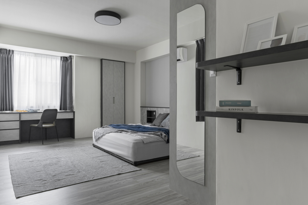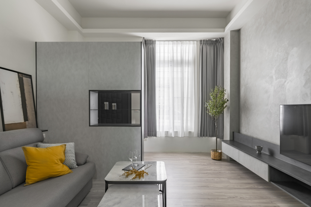 冷灰系色調所呈現的和諧,在空間裡創造出純粹、靜謐的居住氛圍。
