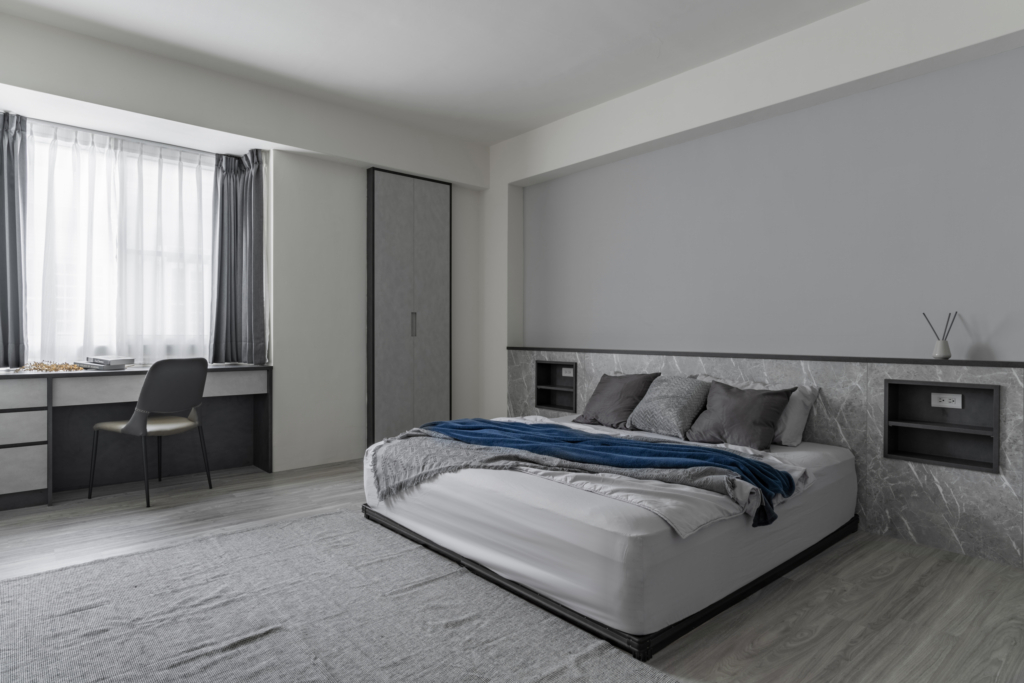 公共空間及主臥室走冷灰色調,小孩房分別為清新森林風及燕麥色系。