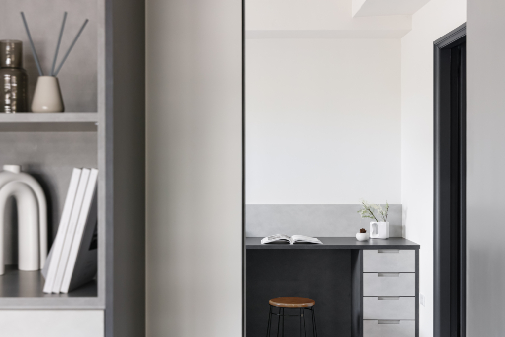 在這個快節奏的現代生活中,灰寂的室內設計讓人感受到一種沉著冷靜的力量。 低彩度的色調如雲霧般籠罩著空間,營造出一種柔和而平靜的氛圍。