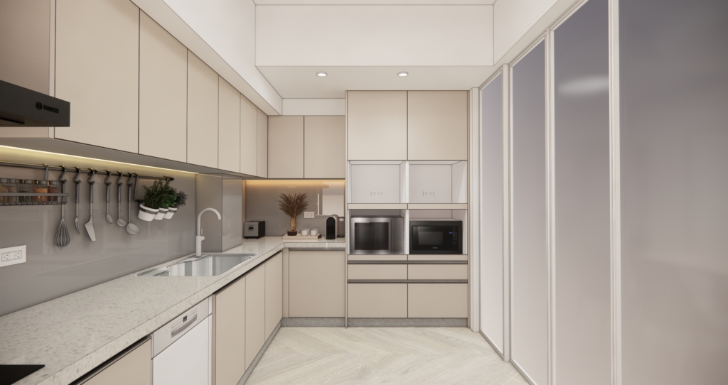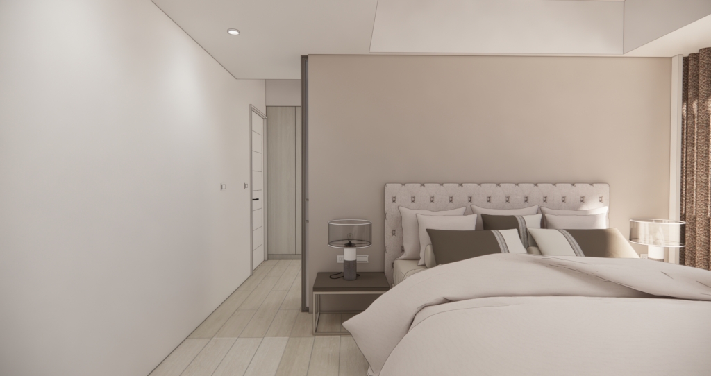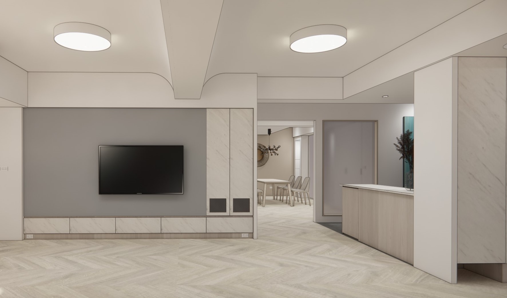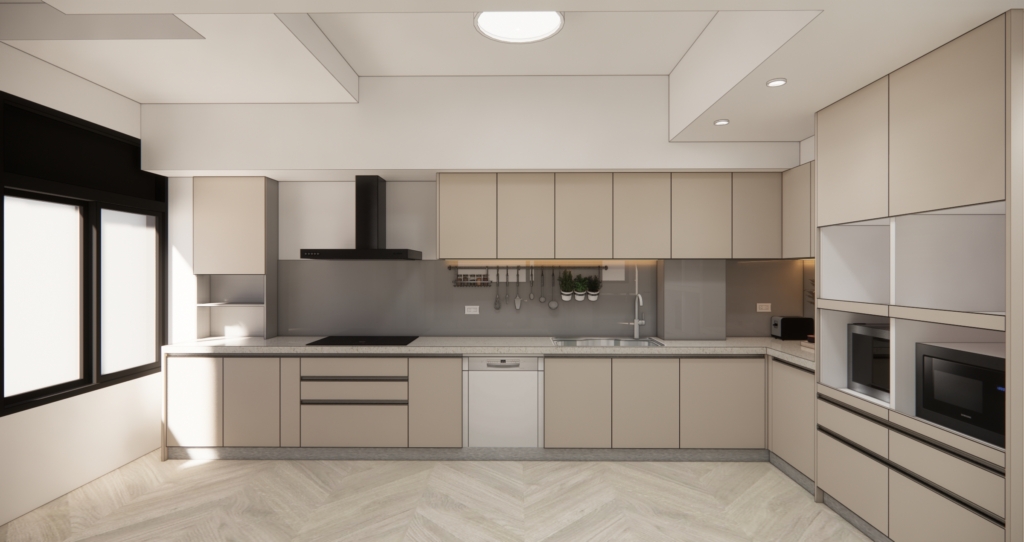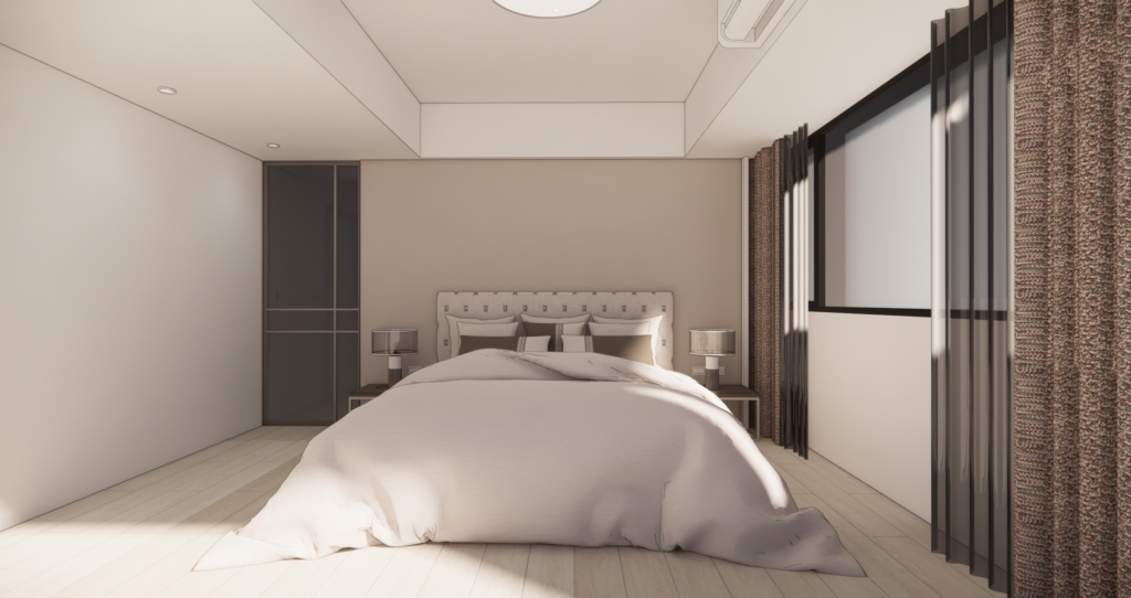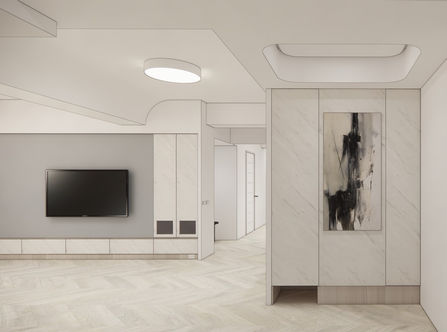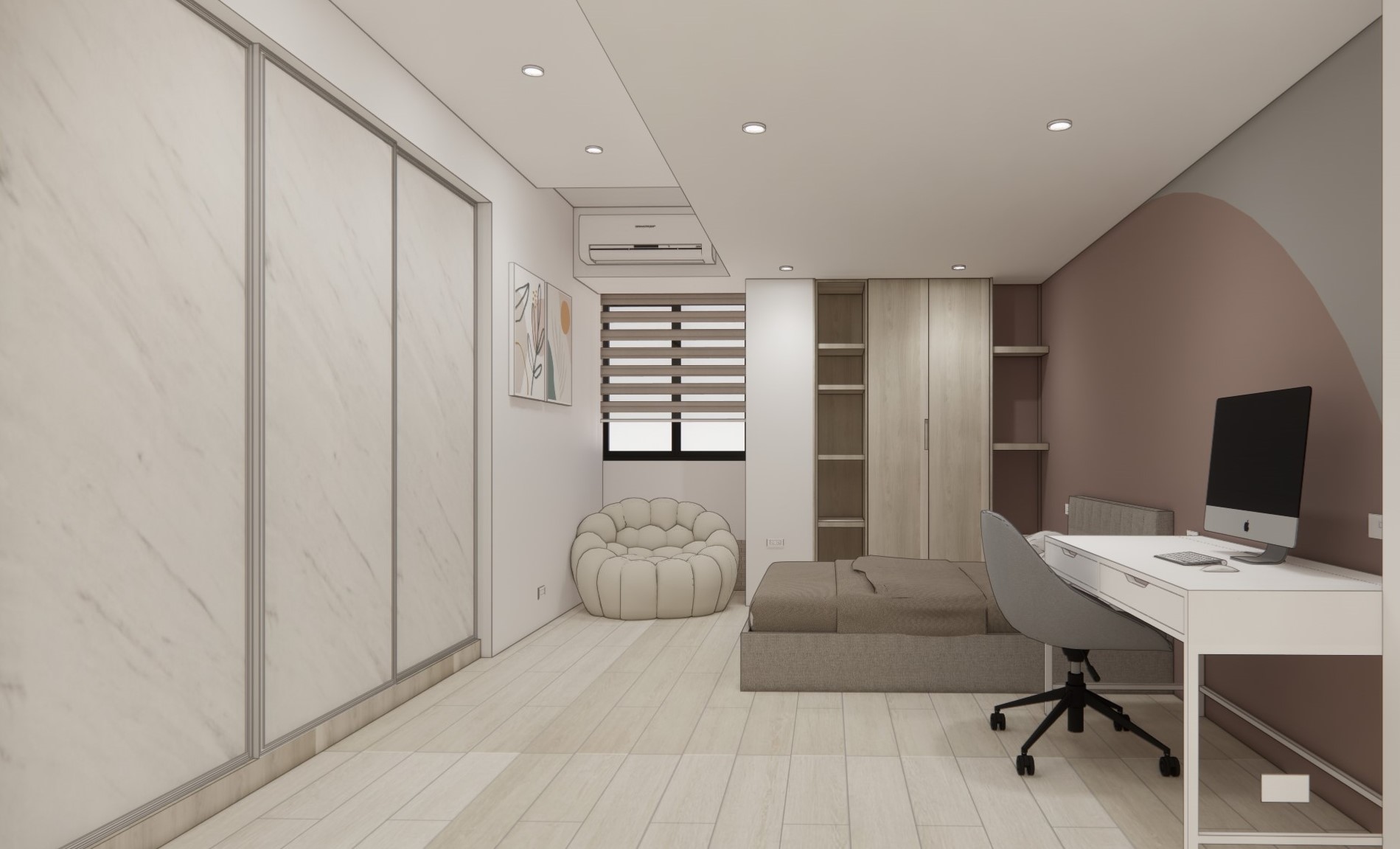 空間中的圓角設計地置身在家中的頂層,猶如溫柔的懷抱,讓家凝聚其中。