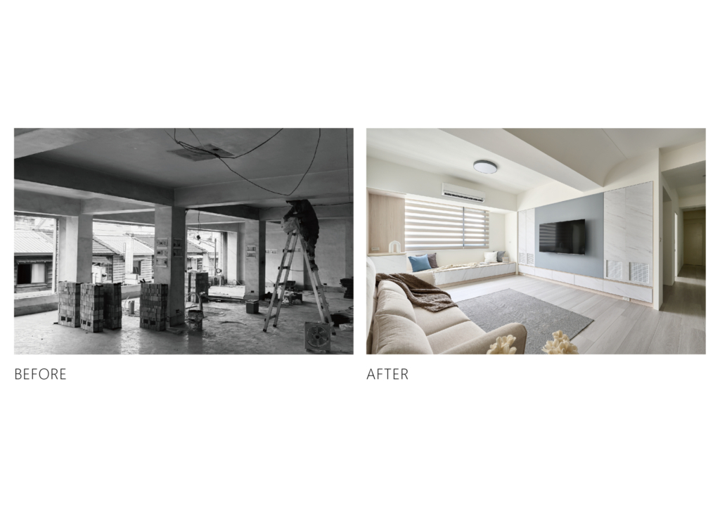 空間中的圓角設計地置身在家中的頂層,猶如溫柔的懷抱,讓家凝聚其中。
